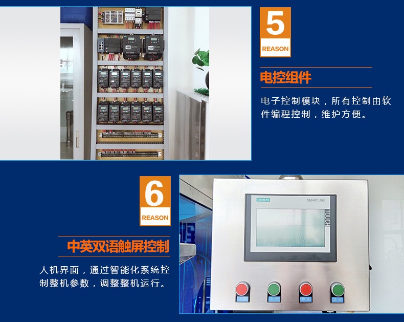 6.人機界面,通過智能化系統控制整機參數,調整整機運行,中英雙語觸摸屏控制。
