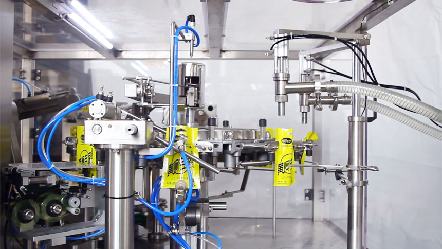 這套全自動(dòng)給袋式液體醬體包裝機(jī)主要適用于液體/醬體類:洗滌劑、黃酒、醬油、米醋、果汁、飲料、番茄醬、花生醬、果醬、辣椒醬、豆扮醬等料的自動(dòng)計(jì)量包裝。